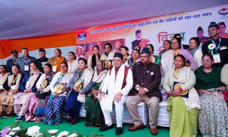 देहरादून। मुख्यमंत्री पुष्कर सिंह धामी ने आज विजय दिवस के अवसर पर गांधी पार्क देहरादून में आयोजित श्रद्धांजलि सभा एवं सम्मान समारोह कार्यक्रम में प्रतिभाग किया। उन्होंने शहीद स्मारक पर पुष्पचक्र अर्पित कर वीर बलिदानियों को श्रद्धांजलि दी। इस अवसर पर उन्होंने 1971 के युद्ध के सैनिकों और शहीदों के परिजनों को सम्मानित भी किया। कार्यक्रम में मुख्यमंत्री ने सैनिक कल्याण निदेशालय और जिला सैनिक कल्याण कार्यालय (डीडीहाट, हरबर्टपुर, पिथौरागढ़ एवं हरिद्वार) में सरकारी वाहन उपलब्ध कराने की घोषणा की। मुख्यमंत्री ने विजय दिवस की शुभकामनाएं देते हुए कहा कि हमारे वीर जवानों ने अदम्य साहस और सर्वोच्च बलिदान से 1971 के युद्ध में राष्ट्र की अखंडता और स्वाभिमान की रक्षा की। आज भारतीय सेना के शौर्य, त्याग और अटूट राष्ट्रनिष्ठा की गौरवगाथा को स्मरण करने का दिन है, जो हमारे इतिहास के पन्नों पर स्वर्णाक्षरों में अंकित है। उन्होंने कहा कि 1971 में पाकिस्तान के लगभग 93 हजार सैनिकों ने हमारी सेना के समक्ष आत्मसमर्पण किया। इस युद्ध में वीरभूमि उत्तराखण्ड के 248 बहादुर सपूतों ने भी अपना सर्वोच्च बलिदान दिया। हमारे प्रदेश के 74 सैनिकों को अपने अदम्य साहस और शौर्य के लिए विभिन्न वीरता पदकों से सम्मानित भी किया गया था। उत्तराखण्ड के लगभग प्रत्येक परिवार का कोई न कोई सदस्य सेना में है। मुख्यमंत्री ने कहा कि प्रधानमंत्री नरेंद्र मोदी के नेतृत्व में जवानों का मनोबल बढ़ाने के साथ ही सेना को अत्याधुनिक तकनीक और हथियारों से सुसज्जित किया जा रहा है। भारत रक्षा सामग्री का निर्यात करने वाले शीर्ष देशों की सूची में शामिल हो गया है। ऑपरेशन सिंधु के माध्यम से भारत ने यह सिद्ध कर दिया कि हमारे सैनिकों के साथ-साथ हमारे स्वदेशी हथियार भी किसी से कम नहीं हैं। इस अभियान में भारत में निर्मित आकाश मिसाइल, डिफेंस सिस्टम और ब्रह्मोस मिसाइल जैसे स्वदेशी हथियारों ने पूरे विश्व में भारत का डंका बजा दिया। आज दुश्मन की एक-एक गोली का जवाब गोलों से दिया जा रहा है। मुख्यमंत्री ने कहा कि यह नया भारत है, जो दुश्मनों की हर नापाक हरकत का करारा जवाब देता है और उन्हें उनके ठिकानों में ही नेस्तनाबूद कर देता है। उन्होंने कहा कि प्रधानमंत्री के नेतृत्व में वीर जवानों के हित में भी कई महत्वपूर्ण निर्णय लिए जा रहे हैं। वन रैंक वन पेंशन योजना हो, नेशनल वॉर मेमोरियल का निर्माण, रक्षा बजट में वृद्धि कर सैनिकों की सभी आवश्यकताओं की पूर्ति करना हो, या बॉर्डर पर इन्फ्रास्ट्रक्चर को मजबूत बनाना, ऐसे अनेक कार्य किए गए हैं। मुख्यमंत्री ने कहा कि प्रधानमंत्री के मार्गदर्शन में प्रदेश सरकार भी सैनिकों और उनके परिवारों के कल्याण के लिए संकल्पि