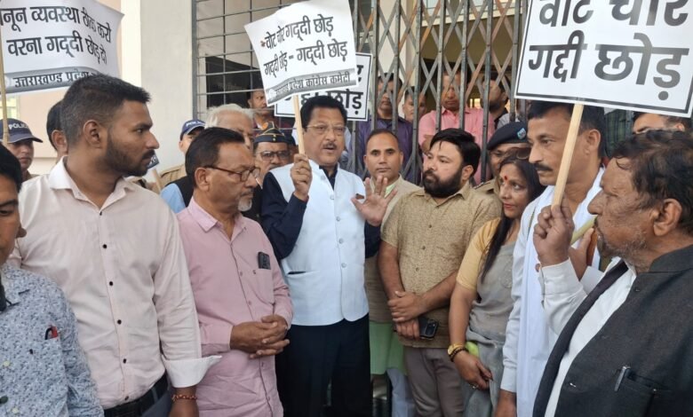 देहरादून: देश व्यापी वोट चोर गद्दी छोड़ अभियान के तहत आज उत्तराखंड प्रदेश कांग्रेस कमेटी के वरिष्ठ उपाध्यक्ष संगठन सूर्यकांत धस्माना के नेतृत्व में पार्टी के कार्यकर्ताओं ने रिंग रोड स्थित राज्य निर्वाचन आयोग कार्यालय का घिराव कर वहां जबरदस्त प्रदर्शन किया व प्रदेश के राज्यपाल लेफ्टीनेंट जनरल गुरमीत सिंह से तत्काल राज्य के राज्य निर्वाचन आयुक्त सुशील कुमार को बर्खास्त करने की मांग की। अपने पूर्व घोषित कार्यक्रम के अनुसार काफी संख्या में कांग्रेस कार्यकर्ता प्रदेश उपाध्यक्ष संगठन सूर्यकांत धस्माना के नेतृत्व में साढ़े बारह बजे राज्य निर्वाचन आयोग कार्यालय पहुंचे जहां कार्यक्रम की सूचना पा कर पहले ही बड़ी संख्या में सीओ रायपुर के नेतृत्व में भरी पुलिस बल तैनात था। आयोग के कार्यालय के मुख्य द्वार से श्री धस्माना के नेतृत्व में कार्यकर्ता हाथों में तख्तियां लिए राज्य निर्वाचन आयुक्त के कार्यालय की ओर बड़े जहां सीओ रायपुर ने श्री धस्माना को बताया कि राज्य निर्वाचन आयुक्त कार्यालय में उपस्थित नहीं है जिस पर श्री धस्माना व अन्य कार्यकर्ताओं ने प्रदर्शन शुरू कर दिया और पूरा आयोग परिसर वोट चोर गद्दी छोड़ के नारों से गूंज उठा। काफी देर तक प्रदर्शन के बाद आयोग के सचिव राहुल प्रदर्शनकारियों केे बीच पहुंचे और कहा कि कोई ज्ञापन हो तो वे उनको सौंप दें जिस पर श्री धस्माना ने कहा कि आज वे ज्ञापन देने नहीं बल्कि राज्य निर्वाचन आयुक्त को कुर्सी से हटाने आए हैं क्योंकि राज्य निर्वाचन आयुक्त ने प्रदेश के त्रि स्तरीय पंचायत चुनावों में पंचायती राज कानून का उल्लंघन किया और राज्य के चुनावों को प्रभावित करने वाला कानून विरोधी कार्य किया जिसके कारण राज्य निर्वाचन आयोग के आदेश के खिलाफ माननीय उच्च न्यायालय नैनीताल ने दो बार स्थगन आदेश पारित किए और बाद में जब राज्य निर्वाचन आयोग माननीय उच्च न्यायालय के आदेशों के खिलाफ उच्चतम न्यायालय गया तो उसको न केवल प्रताड़ना मिली बल्कि दो लाख रुपए अर्थदंड भी राज्य निर्वाचन आयोग के ऊपर लगाया गया जो न केवल शर्म की बात है बल्कि सीधे सीधे राज्य निर्वाचन आयोग को देश के सर्वोच्च न्यायालय ने वोट चोरी का दोषी माना है इसलिए उत्तराखंड राज्य निर्वाचन आयुक्त को एक मिनिट भी अपने पद पर बने रहने का अधिकार नहीं है अतः उनको स्वयं इस्तीफा दे देना चाहिए था किंतु वे बेशर्मी से अपनी कुर्सी से चिपके बैठे है इसलिए श्री राज्यपाल को उन्हें तत्काल बर्खास्त कर देना चाहिए वरना भविष्य में किसी भी दिन कांग्रेस के कार्यकर्ता स्वयं उनको कुर्सी से उठा कर राज्य निर्वाचन आयोग दफ्तर से बाहर करने के लिए मजबूर होंगे। श्री धस्माना ने कहा कि देश में वोट चोरी के दो मामले ज