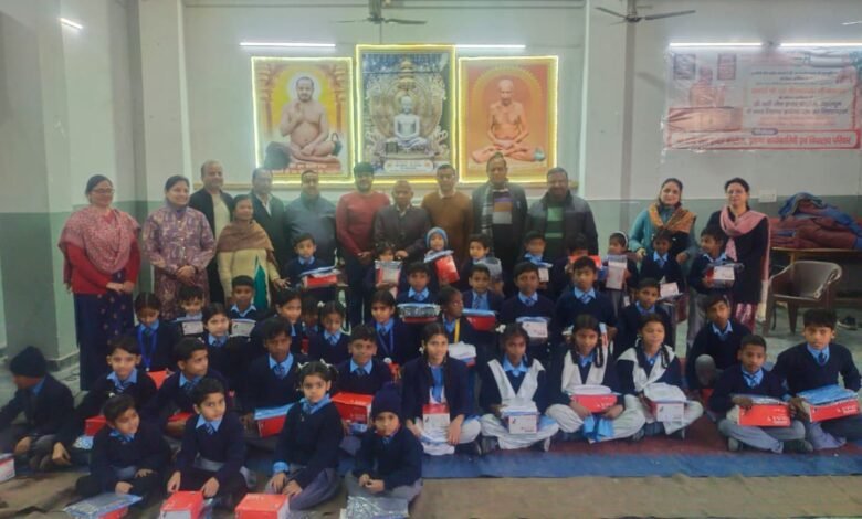 पुष्प वर्षा योग समिति के द्वारा श्री वर्णी जैन इंटर कॉलेज में यूनीफॉर्म वितरण