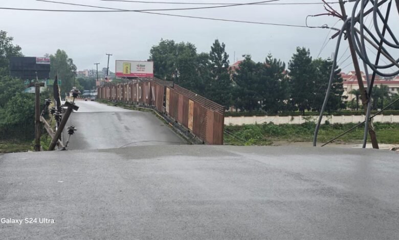 भारी बारिश के कारण कैंट क्षेत्र में सप्लाई चौक से किमाड़ी, गल्जवाड़ी तथा गजियावाला जाने वाले मार्ग पर घट्टिखोला पुल के पास सड़क का हिस्सा नदी के तेज बहाव के कारण क्षतिग्रस्त हो गया है, जिससे उक्त मार्ग पर यातायात पूर्ण रूप से बाधित हो गया है।