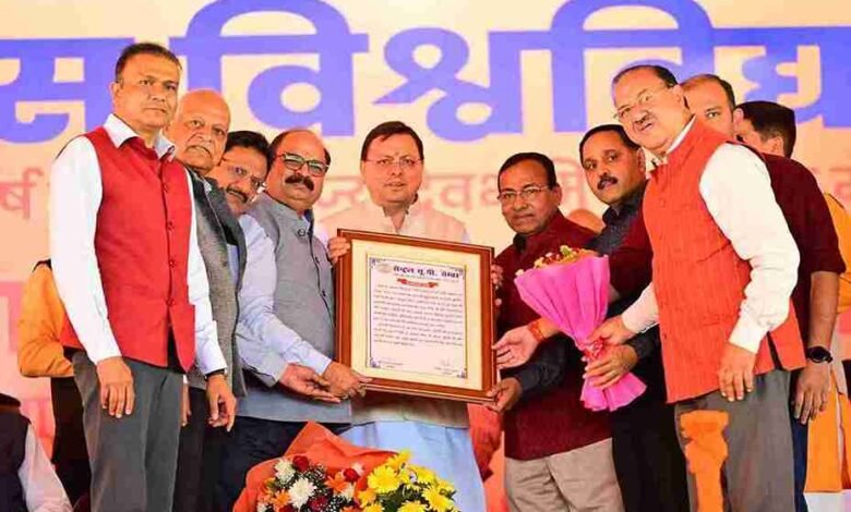 मुख्यमंत्री ने कहा कि प्रधानमंत्री नरेंद्र मोदी के नेतृत्व में देश हर क्षेत्र में आगे बढ़ रहा है। उनके नेतृत्व में जनहित में अनेक निर्णय लिये गये हैं। कश्मीर से धारा 370 का अंत, तीन तलाक जैसी कुप्रथा को समाप्त करना , नागरिकता संशोधन कानून लागू करना और फिर अयोध्या में भगवान श्रीराम के भव्य मंदिर के निर्माण जैसे ऐतिहासिक कार्य हुए हैं। प्रधानमंत्री से प्रेरणा लेते हुए उत्तराखंड में समान नागरिक संहिता लागू करने का ऐतिहासिक कदम उठाया गया।