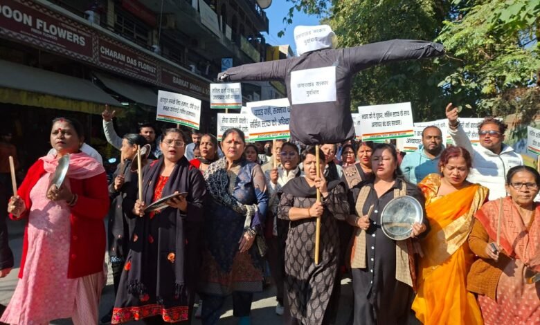 देहरादून, 09 दिसंबर। नर्सिंग बेरोज़गार युवतियों के शांतिपूर्ण प्रदर्शन के दौरान महिला पुलिसकर्मियों द्वारा की गई अभद्रता और थप्पड़ मारने की घटना के विरोध में आज उत्तराखंड महिला कांग्रेस ने प्रदेश अध्यक्ष ज्योति रौतेला के नेतृत्व में प्रदेश कांग्रेस मुख्यालय से चलकर पुलिस मुख्यालय पर जोरदार प्रदर्शन कर घेराव किया। इस विरोध कार्यक्रम में बड़ी संख्या में नर्सिंग बेरोजगार युवतियाँ भी उपस्थित रहीं। महिला कांग्रेस की नेत्रियों को पुलिस मुख्यालय से पहले ही बैरिकेडिंग लगाकर रोक दिया गया जहां उन्होंने बैरिकेडिंग पर चढ़कर उत्तराखंड सरकार का पुतला दहन किया। नरसिंह बेरोजगारों को और महिला कांग्रेस की नेत्रियों और कार्यकर्ताओं को पुलिस गाड़ियों में भरकर एकता विहार छोड़ आई। इस दौरान प्रदर्शन को संबोधित करते हुए प्रदेश महिला कांग्रेस अध्यक्ष ज्योति रौतेला ने कहा कि “रोज़गार की मांग करने वाली बेटियों के साथ इस प्रकार का अपमानजनक और दमनकारी व्यवहार सरकार की असंवेदनशीलता को उजागर करता है। धामी सरकार युवाओं की आवाज़ सुनने के बजाय उन पर शक्ति प्रदर्शन कर रही है, जो लोकतांत्रिक मूल्यों के विपरीत है।” महिला कांग्रेस कार्यकर्ताओं ने सरकार के खिलाफ नारेबाज़ी कर पुलिस मुख्यालय का घेराव किया और सरकार का पुतला दहन कर विरोध दर्ज कराया। रौतेला ने आगे कहा कि नर्सिंग की बेटियाँ अपने अधिकार और रोजगार मांग रही थीं, लेकिन सरकार ने उनके सवालों का जवाब संवाद से देने की बजाय थप्पड़ों और धक्कों से दिया। यह न केवल लोकतांत्रिक अधिकारों का हनन है बल्कि महिलाओं के प्रति सरकार की दमनकारी मानसिकता को भी दर्शाता है। महिला कांग्रेस ने स्पष्ट चेतावनी दी कि यदि सरकार ने जल्द कार्रवाई नहीं की तो आंदोलन को और व्यापक स्तर पर तेज किया जाएगा। कांग्रेस पार्टी हर उस बेटी के साथ मज़बूती से खड़ी है जिसके साथ अन्याय हुआ है, और उनके सम्मान और अधिकारों की रक्षा के लिए प्रतिबद्ध है। इस विरोध प्रदर्शन में मुख्य रूप से उत्तराखंड कांग्रेस की मुख्य प्रवक्ता गरिमा मेहरा दसौनी, महिला कांग्रेस की वरिष्ठ उपाध्यक्ष आशा मनोरमा डोबरियाल, महानगर महिला कांग्रेस अध्यक्ष उर्मिला थापा, प्रदेश महासचिव निधि नेगी, सुशीला शर्मा, पुष्पा पवार, अनुराधा तिवारी, ब्लॉक अध्यक्ष अनीता सकलानी, सचिव रेखा ढींगरा, सेवादल से सावित्री थापा और मंजू सहित अनेक कार्यकर्ता उपस्थित रहीं।