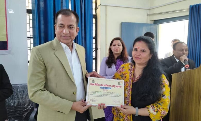 पौड़ी। जिला न्यायालय परिसर पौड़ी के सभागार कक्ष में “गुरु शक्ति : न्याय शक्ति” अभियान के अंतर्गत सम्मान समारोह आयोजित किया गया। इस दौरान जिला जज द्वारा विभिन्न क्षेत्रों में उत्कृष्ट कार्य करने वाले शिक्षक और शिक्षिकाओं को सम्मानित किया गया।