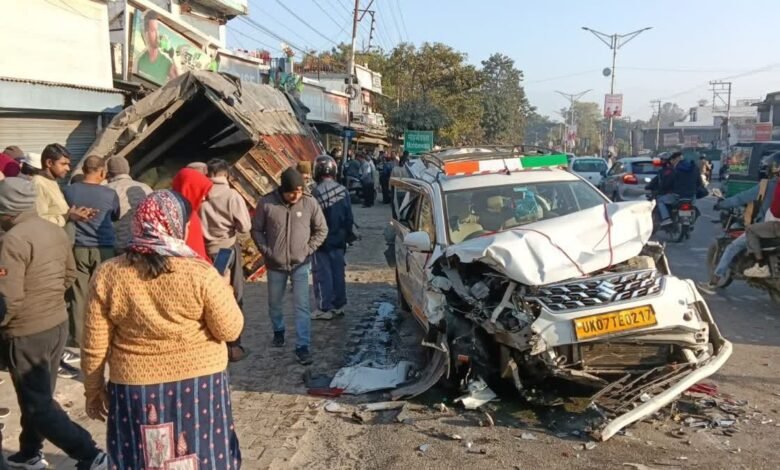 प्राप्त जानकारी के अनुसार मोहब्बेवाला के पास एक ट्रक के बैक होने के कारण सड़क पर वाहन रुके हुए थे। इसी दौरान तेज रफ्तार से आ रहे सीमेंट ट्रक ने पहले खड़ी तीन कारों, एक ट्रक और एक ऑटो को जोरदार टक्कर मारी। टक्कर के बाद ट्रक दुकानों की ओर मुड़ा और पलट गया। दुर्घटना के बाद मौके पर अफरा-तफरी मच गई। प्रत्यक्षदर्शियों ने बताया कि कारों में फंसे लोगों को स्थानीय नागरिकों और पुलिस की मदद से बाहर निकाला गया। घटना की सूचना मिलते ही कोतवाली पटेलनगर पुलिस और सीपीयू टीम मौके पर पहुंची और राहत कार्य शुरू किया। टकराव के दौरान ट्रक की डीजल टंकी भी फट गई, जिससे डीजल सड़क पर फैल गया। आग की आशंका को देखते हुए फायर स्टेशन को सूचित किया गया। क्षतिग्रस्त वाहनों को हटाकर सड़क पर यातायात को सुचारू कर दिया गया। कोतवाली पटेलनगर प्रभारी चंद्रभान अधिकारी के अनुसार ट्रक चालक की हालत गंभीर बनी हुई है और उसे अस्पताल में भर्ती कराया गया है। अन्य वाहनों में बैठी सवारियों को हल्की चोटें आई हैं। पुलिस दुर्घटना के कारणों की जांच कर रही है और मामले में अग्रिम कार्रवाई जारी है।